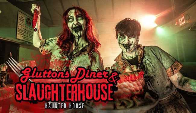 Are those two diners with beaded necklaces asleep? Why are they slumped over their food that way? They never move. The grisly sights through the kitchen window are brutal and violent. Unidentifiable meats are hacked apart then sizzled in their bloody bubbles on the filthy grill. Glutton, the proprietor, toils away in his gore splattered chef’s coat. What was that mess he just served? Was that a finger?